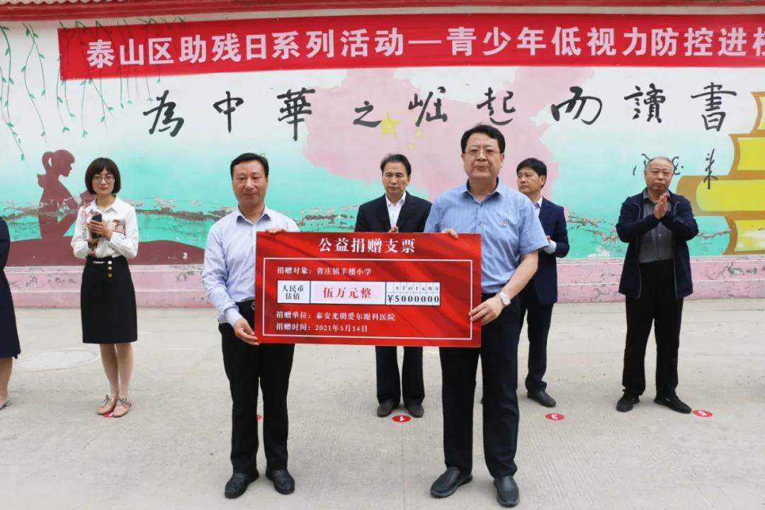 ? ? ? ? 泰安光明愛爾眼科醫(yī)院CEO楊敬昌表示,“希望借助學校、醫(yī)院間的交流合作,增強校園內(nèi)低視力防控的醫(yī)療支撐,為培養(yǎng)德智體美勞全面發(fā)展的社會主義接班人貢獻一份自己的力量。”同時,他寄語在座同學們,要“文明其精神,強健其體魄,齊頭并進,綜合發(fā)展,學習、健康兩不誤?!?/p>