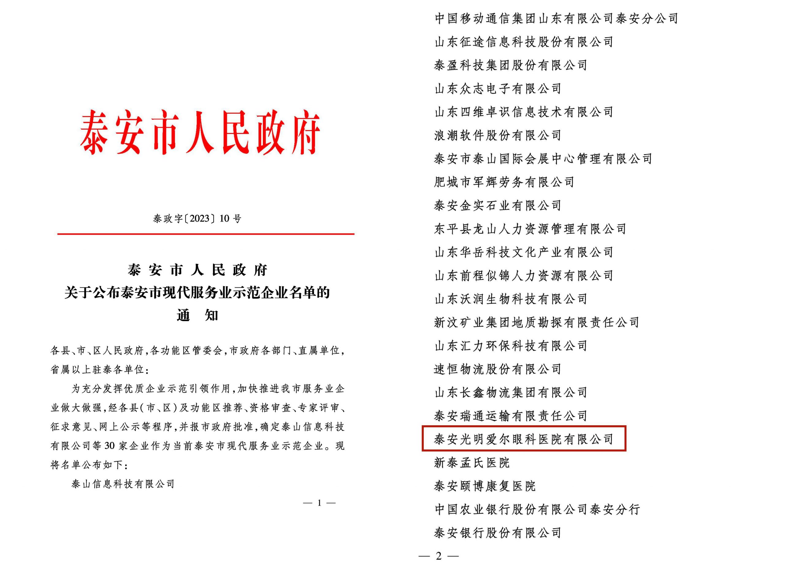 喜報!泰安光明愛爾眼科醫(yī)院獲評“泰安市現(xiàn)代服務業(yè)示范企業(yè)”